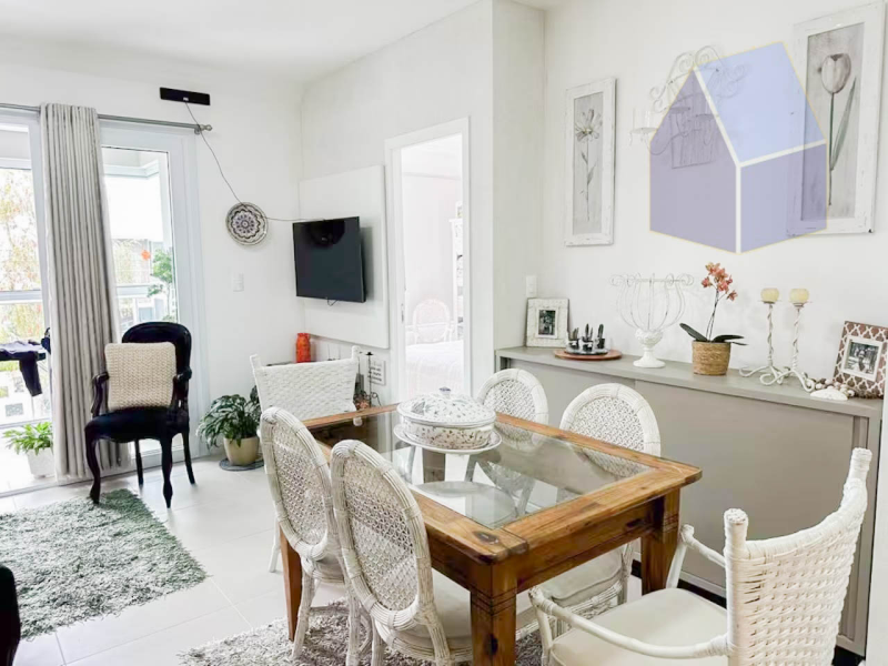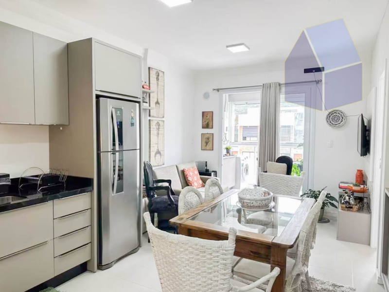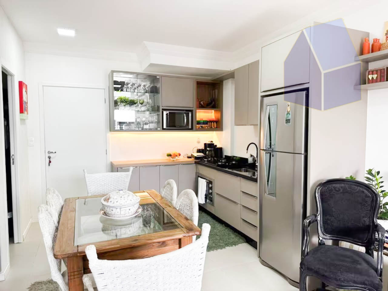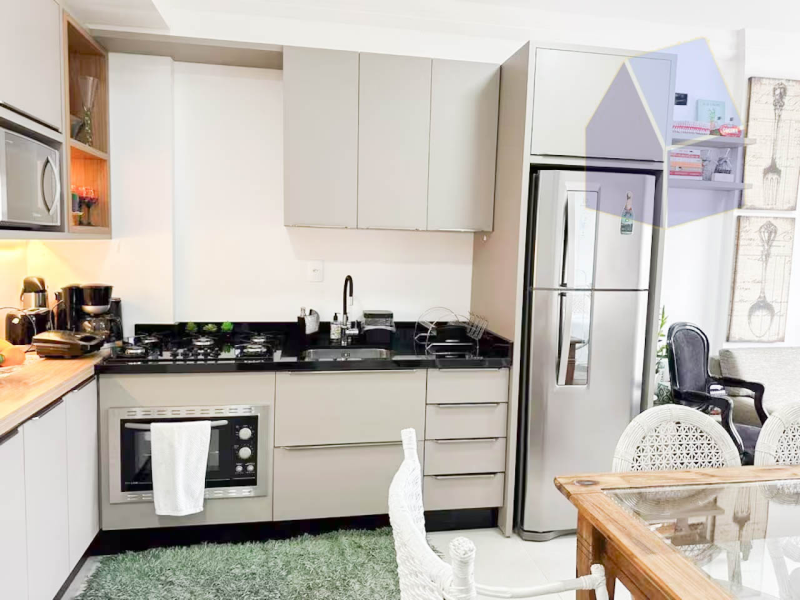 Apartamento com 2 dormitórios, sala de estar integrada a sala de jantar e cozinha;
