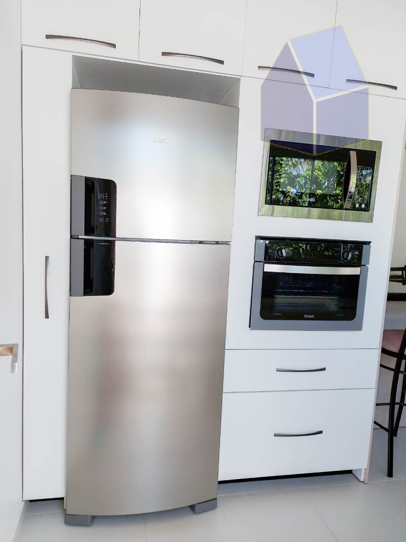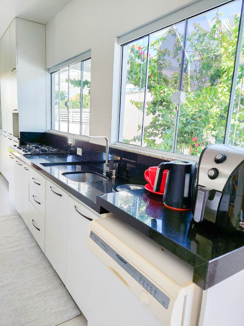 Cozinha equipada com os principais eletrodomésticos, panelas, louças, talheres e demais utensílios;