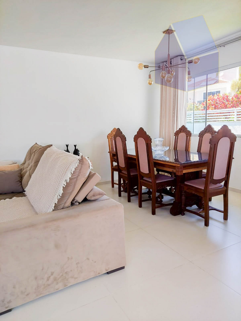 Sala de estar, sala de jantar e cozinha em ambientes integrados;