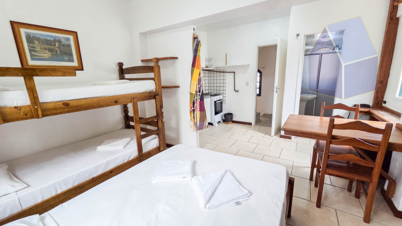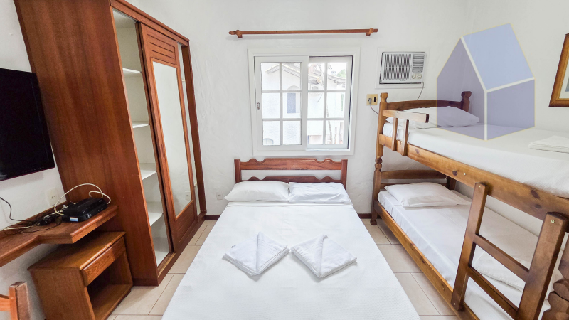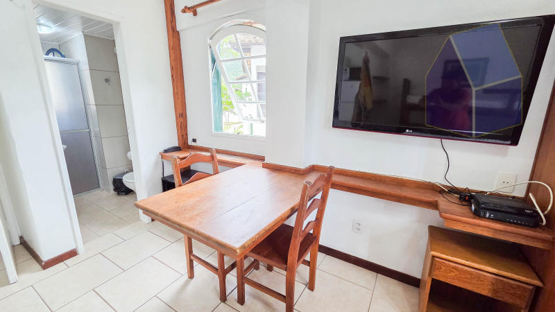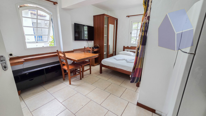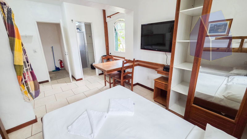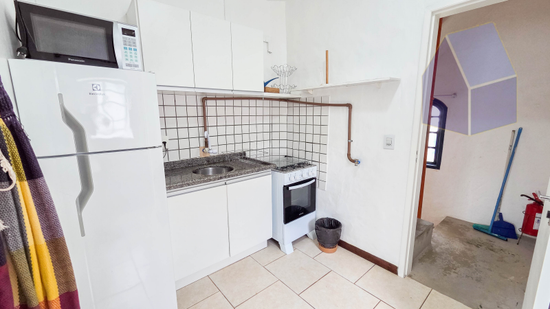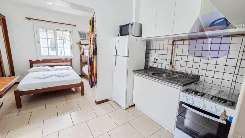 Dormitório, sala de Jantar e cozinha em ambientes integrados;